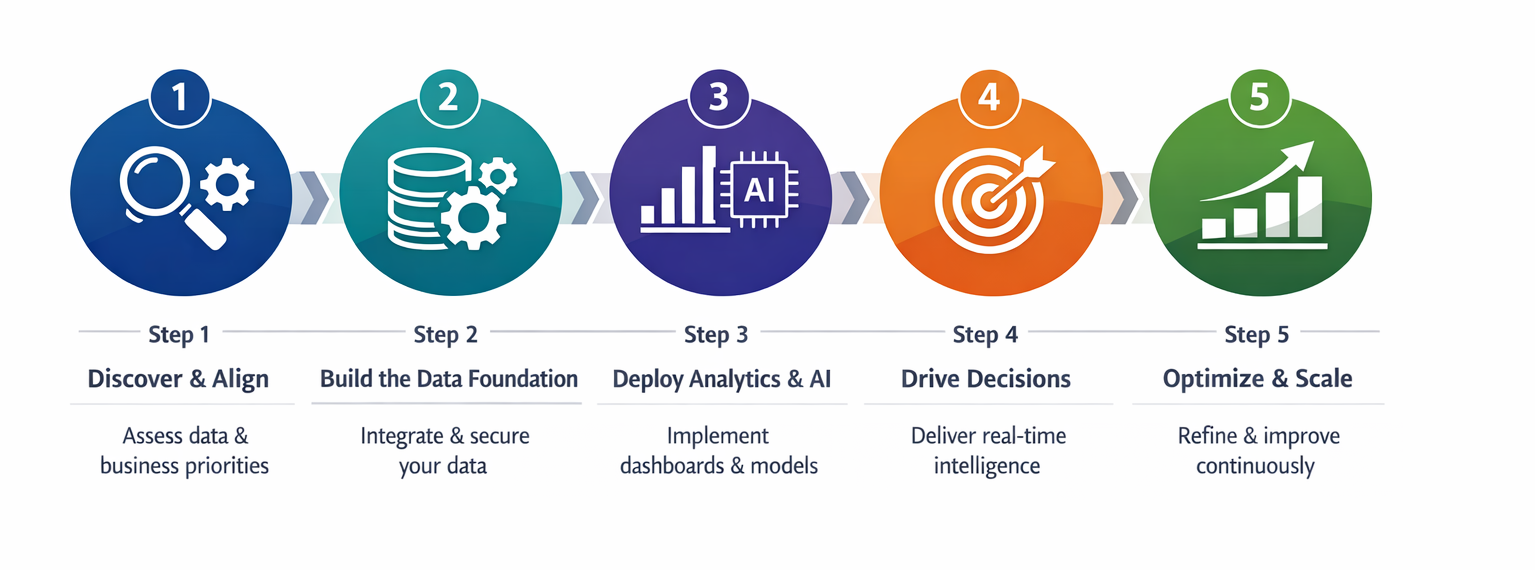 Step 1: Discover & Align - We assess your data, systems, and business priorities.